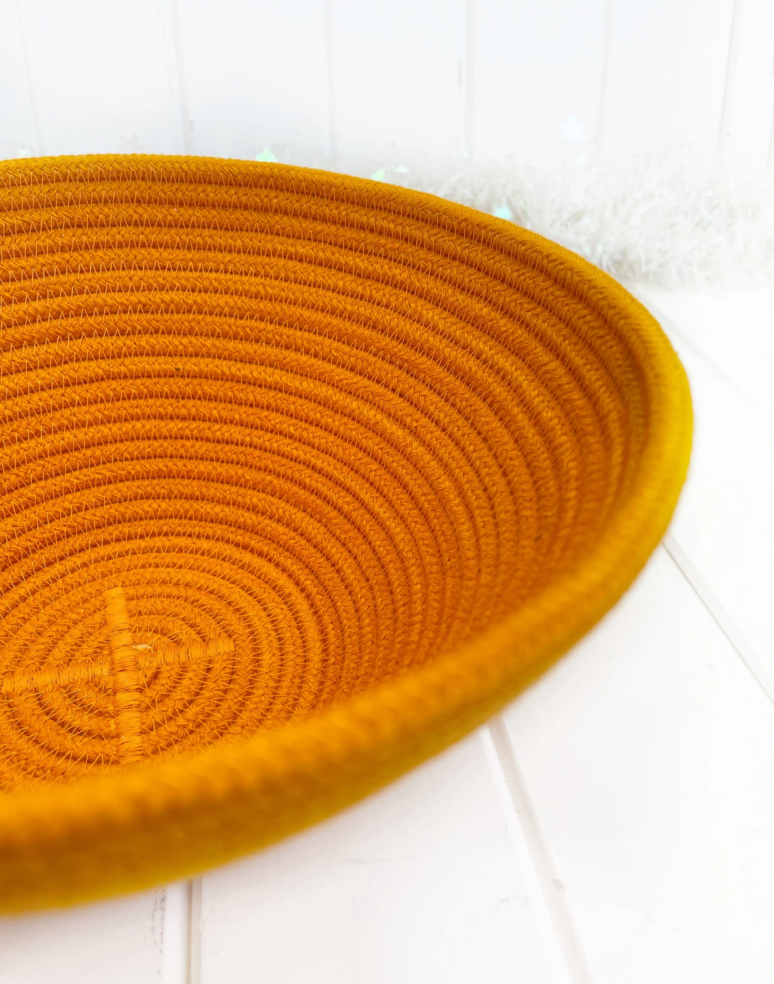 Golden ochre solid and ombre hand dyed cotton rope bowls