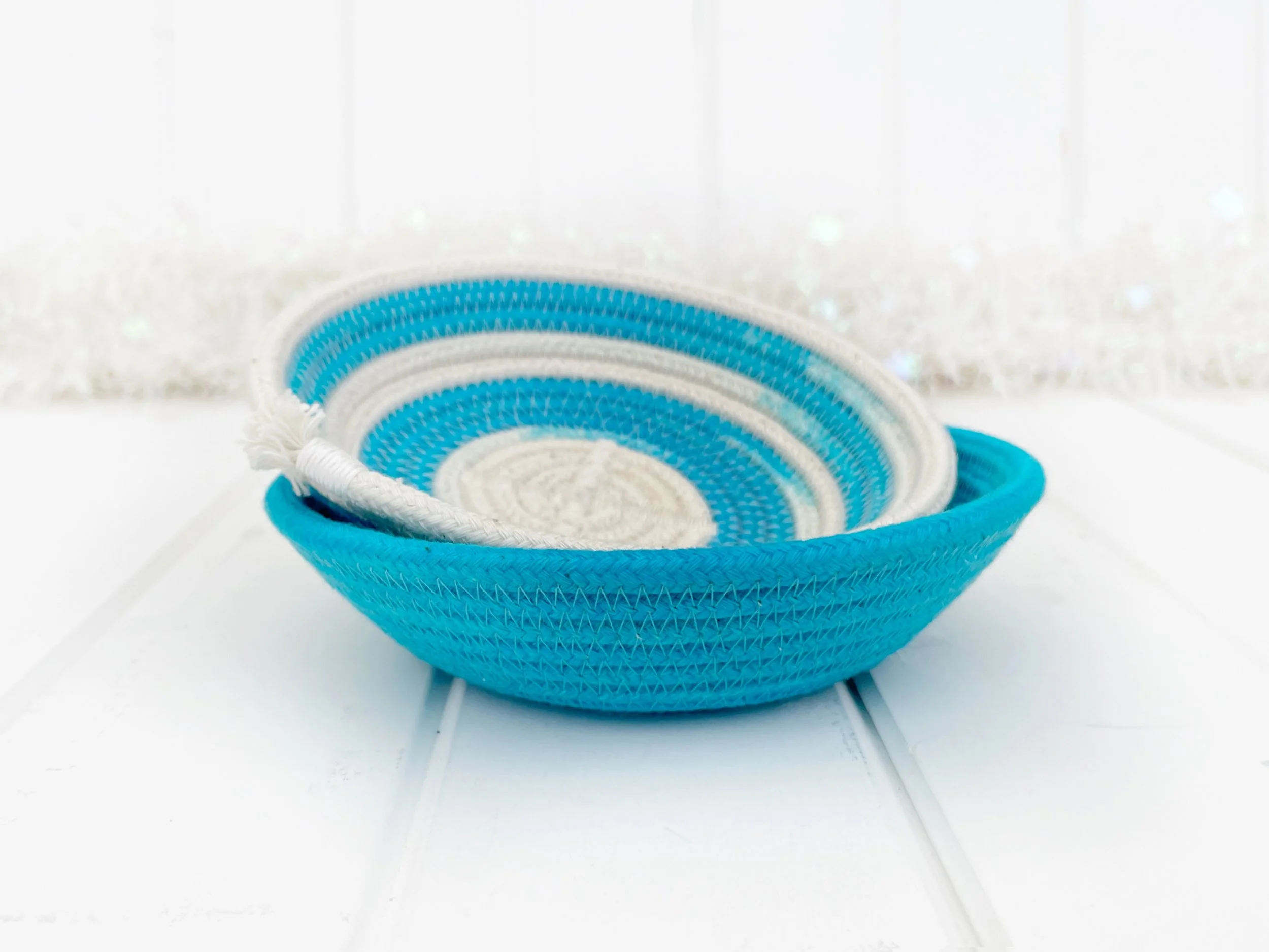 Sapphire blue fabric trimmed natural cotton rope bowl