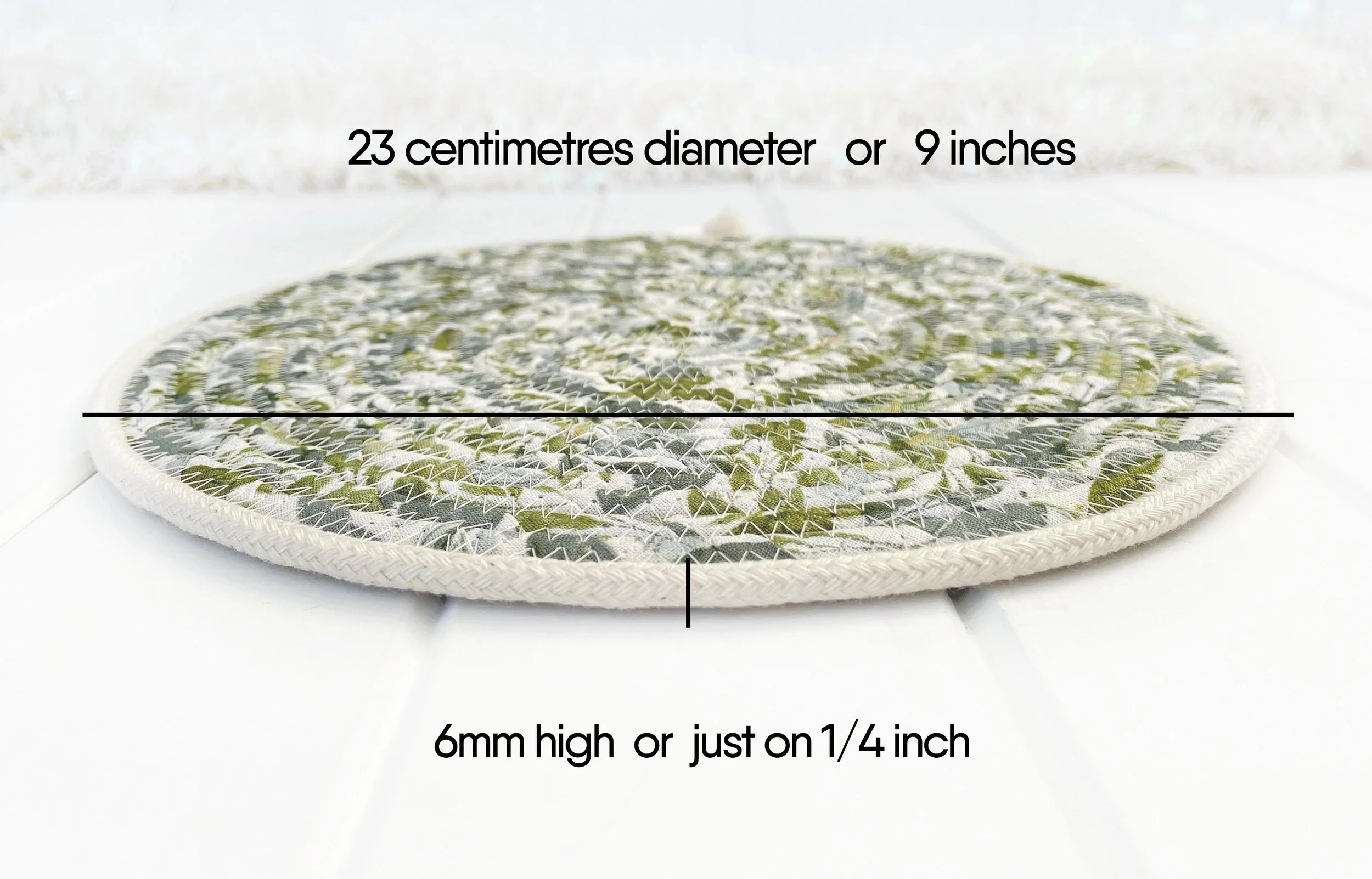 The rope bowl is approx 23cm in diameter across the top, reaching 6.5cm high.